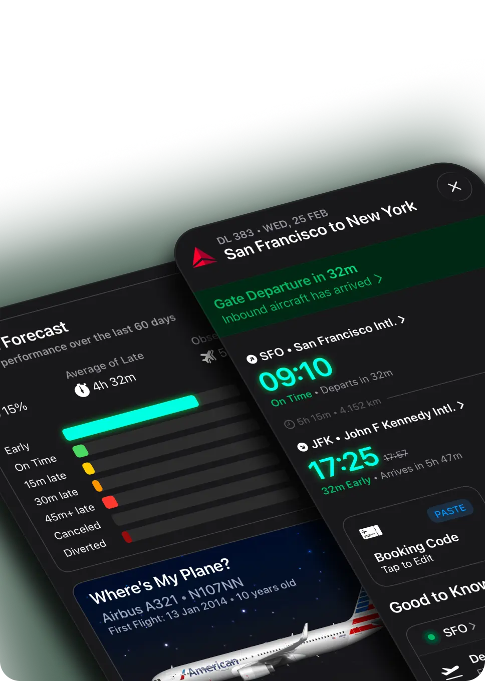 The only app that tells you everything about your flight. Get real-time updates, the fastest alerts, and delay predictions so you're always the first to know and rebook—all in a sleek, easy-to-use app. Perfect for frequent flyers and simple enough for everyone.