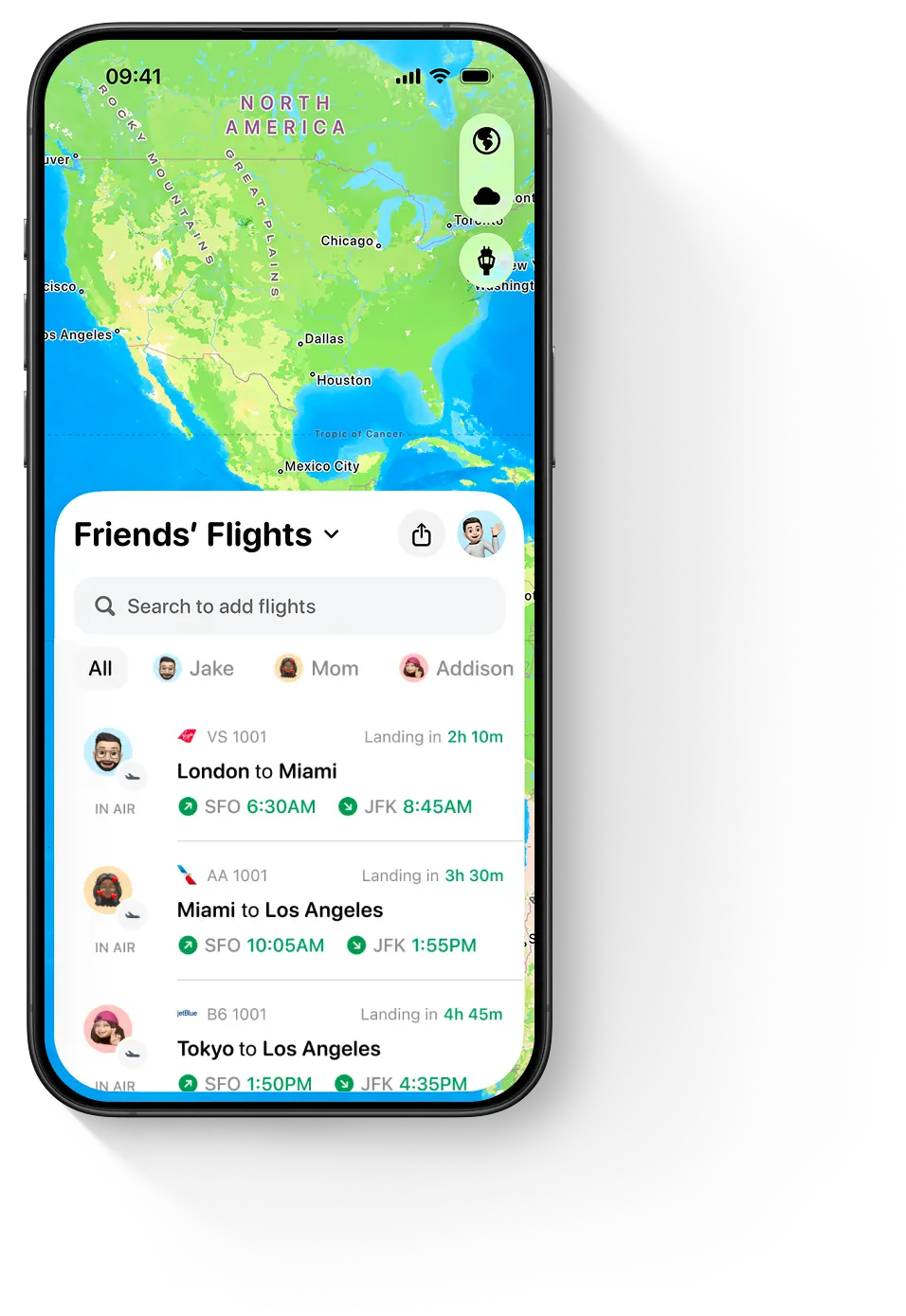 Choose who you want to share your flying with. They can then customize the notifications they get about your trip (like when you’ve landed, whether there are delays, and more).