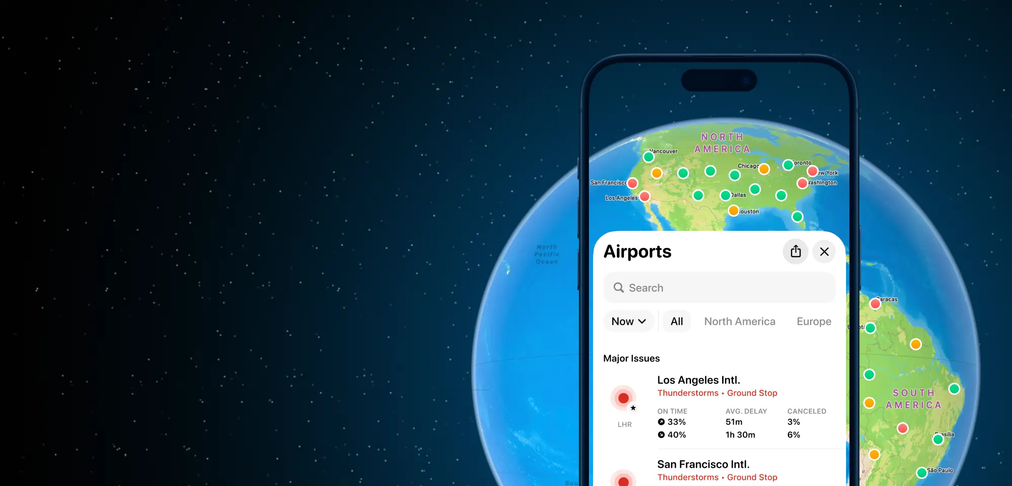 Track 14,000+ airports worldwide with live arrivals, departures, delays, and operational performance — all in real time.